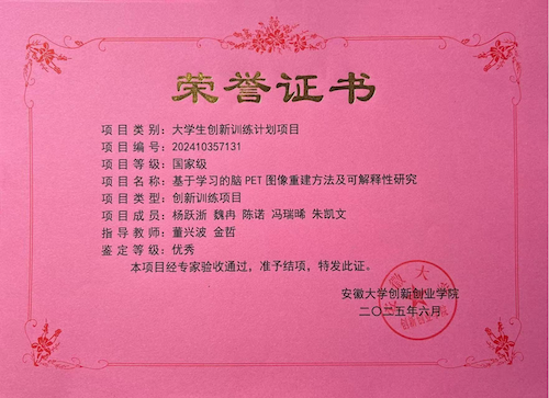 Outstanding completion of national-level innovation training project, CNY 6,000