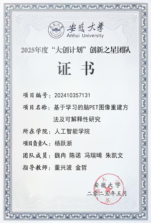 I am currently an undergraduate student at the School of Artificial Intelligence, Anhui University. I am also a member of the Vision and Learning Lab. I was previously an intern at the Anhui Provincial International Joint Research Center for Advanced Technology in Medical Imaging. My research is dedicated to the application of artificial intelligence in medical imaging.